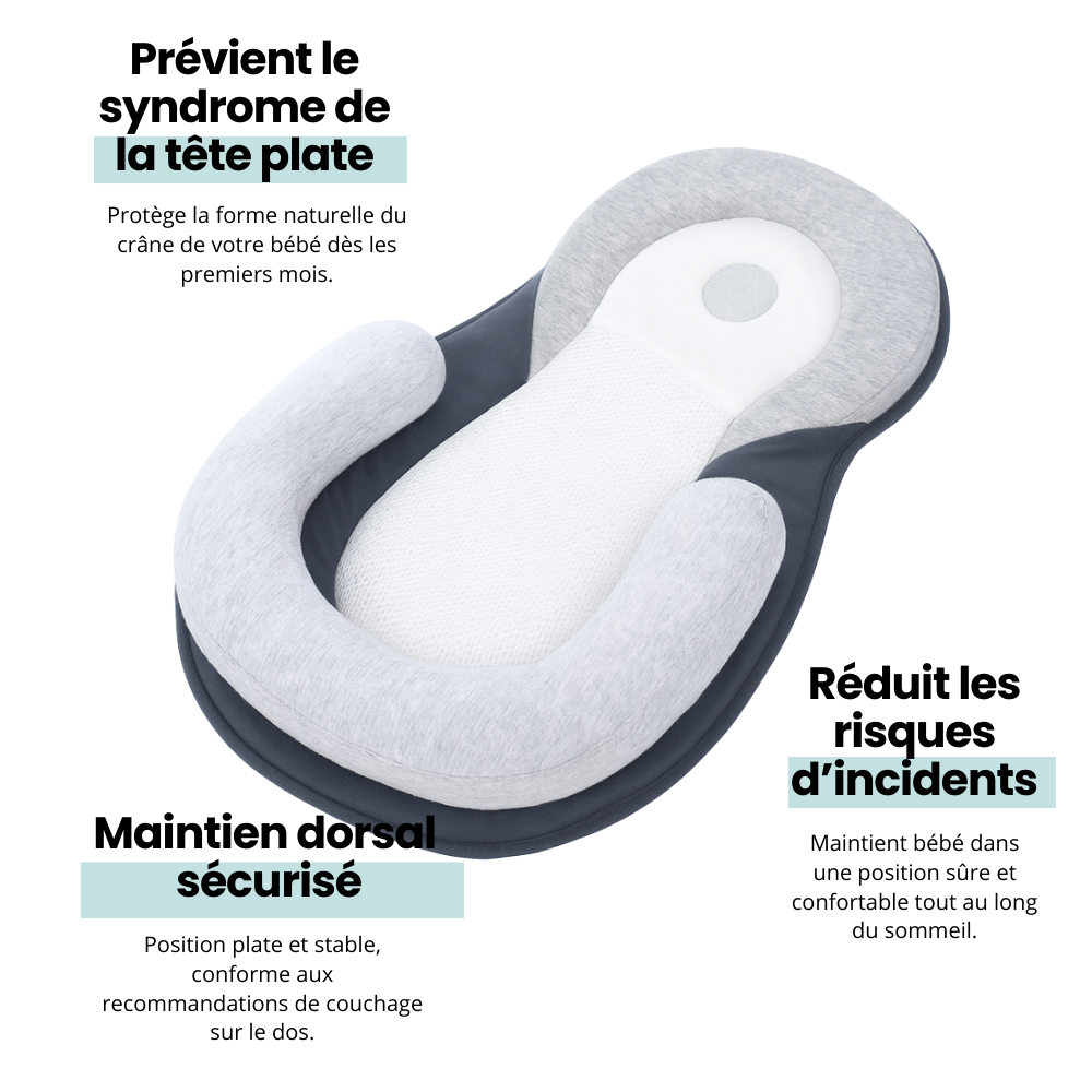 Le nid qui maintient bébé sur le dos en toute sécurité tout en créant un cocon rassurant.